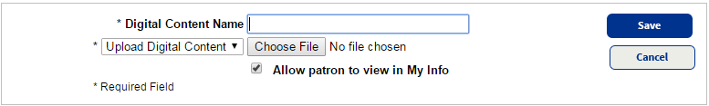 3. In the Digital Content Name field, type a name for the content. This name will appear on My Info pages for any patron who checks out the resource.